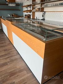 VENDESI BANCONE 2019 BAR COMPLETO DI PEDANA, CASSETTI REFRIGERATI, ZONA CALDO, FREDDO, ESPOSIZIONE, LAVAGNA.. COME NUOVO, FINITURE DI PREGIO, CHIUSURA ATTIVITà CAUSA COVID. A DISPOSIZIONE PER ULTERIORI INFORMAZIONI O VISITA. ALTRO ARREDO (TAVOLI, SEDIE, ACCESSORI) DA MOSTRARE IN LOCO.