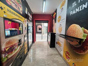 ? *OPPORTUNITÀ CHIAVI IN MANO - LOCALE AUTOMATIZZATO FOOD & BEVERAGE* ? Avvia subito il tuo business con un locale commerciale **moderno, già operativo e completamente automatizzato**, progettato per lavorare anche senza personale h24. All'interno troverai un format innovativo e ad alta richiesta, con macchinari già pronti all'uso: ? **Distributore di patatine fritte espresse** * Preparazione al momento, prodotto sempre caldo e fragrante * Sistema automatico di cottura e servizio ? **Distributore di panini caldi** * Riscaldamento automatico * Ideale per un'offerta veloce e continua durante tutta la giornata ? **Distributore di bevande fresche** * Ampia capacità di carico * Sistema integrato di lettura tessera sanitaria per verifica età (vendita alcolici) ? **Tutti i distributori sono già dotati di sistemi di pagamento completi:** * Accettazione contanti * Pagamenti elettronici (bancomat e carte di credito) ? **La vendita comprende l'intero locale**, completo di: * Sistema di videosorveglianza * Vano rifiuti dedicato * Grafiche professionali già installate * Pozzetto per scorta patatine * Scaffalature per stoccaggio merce * Tavolino in metallo ad uso magazzino * Frigorifero XL per conservazione scorte panini ? **Pronto all'uso - inizi a lavorare da subito** ? Ideale anche come seconda entrata, gestione semplice e automatizzata ? Costi contenuti e alta scalabilità Un investimento concreto in un settore sempre attivo, con un'attività già strutturata e funzionante. ? Contattami per maggiori informazioni o per fissare una visita!