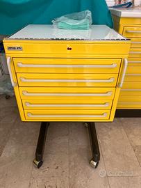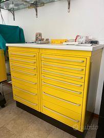 --Mobili Dental Art per Ambulatorio Odontoiatrico composto da 12 pz c.a , 2 servomobili, 2 lavelli, 8 cassettiere e ripiani, 2 seggiolini, 1 sigillatrice Euronda, 1 compressore Ceccato, 1 Riunito Sirona E5, 1 vasca ad ultrasuoni per pulizia strumenti, 1 radiografico per lastrine a sviluppo tradizionale, 1 Air Flow Kavo smacchiatore, 3 turbine (2 Sirona e 1 Kavo), 3 attacchi (2 Sirona e 1 Kavo), 1 ablatore Kavo, 2 contrangoli Rossi (1 WH e 1 Kavo), 3 contrangoli blu (1 Kavo e 2 WH) , 1 contrangolo riduttore anello verde Kavo+ scatola completa strumenti canalari per endodonzia, set completo pinze da estrazione AESCULAP + MARTIN, altri strumenti vari divaricatori, ecc., Esculap, serie completa Kit prima visita:, pinzette Specilli e specchietti, serie di porta impronte metallo americana, bacinelle in acciaio inox + portagarze in acciaio per autoclave, ecc., ecc. Infine, regalo mobili sala sterilizzazione. Prezzo orientativo di €120,00 cad per i mobili. Possibilità di acquisto sia singolarmente che in blocco. Prezzi di realizzo per quanto riguarda le attrezzature da concordare, per cessazione attività.