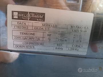 Vetrina gelati Gelo standard, perfettamente funzionante con 28 vaschette in acciaio. Tre motori. Raffreddamento ad aria e ad acqua. ( Gas utilizzato R452A) Dimensione 2550*118 (prezzo 6.000 euro)