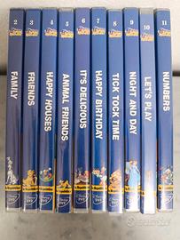 10 DVD Disney's Magic English dal 2 all'11, un corso di lingua inglese progettato per bambini che include clip dei classici Disney, canzoni, giochi interattivi per imparare vocaboli e frasi.