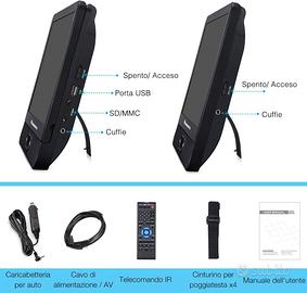 Doppio lettore dvd per auto da utilizzare sia sul poggiatesta che in casa. Ottimo per i viaggi. Marca NAVISKAUTO. Acquistato su Amazon e mai utilizzato. Vendo perchè ho acquistato auto con dvd gia incorporato
