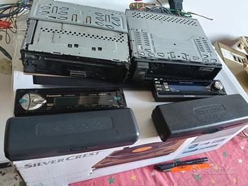Vendo stock di due autoradio perfettamente funzionanti formato standard 1 DIN, complete e pronte per l'installazione. Entrambi i modelli sono dotati di frontalino estraibile e della relativa plancia metallica originale per il montaggio a incasso. Panasonic CQ-RDP101N: Sinto-lettore CD di alta qualità, potenza 45\text{W} \times 4. Un modello robusto con sintonizzatore radio RDS molto preciso e frontalino estraibile. Scott SRX 100: Autoradio con lettore CD/MP3 e porta USB frontale per chiavette ed MP3. Dotata di sistema ESP (Electronic Shock Protection) per evitare salti durante la riproduzione dei CD. Anche questa con frontalino estraibile. Prezzo per entrambe euro 50 non trattabili(prese separatamente sono 40 la Panasonic e 30 la Scott)ritiro zona Imperia,si effettua eventualmente spedizione solamente con pagamento tramite bonifico+spese spedizione,ciao
