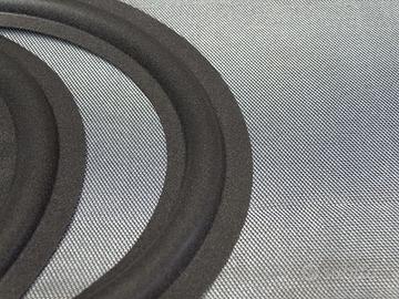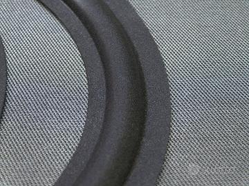Vendo coppia di sospensioni nere per altoparlanti da 250mm - 25 cm - 10 pollici. Materiale: schiuma di poliuretano nera Misure in mm: 247 227 198 180 Bordino interno piegato verso il basso di circa 10 gradi Spessore: 0,7 mm Cedevolezza: medio-alta, sospensione adatta per woofer hi-fi e applicazioni in cui si cerchi alta qualità del suono (microdettaglio) ma anche un minimo di controllo della gamma bassa. Visibili a Milano zona Piazza Abbiategrasso, si vendono a Euro 16 la coppia.