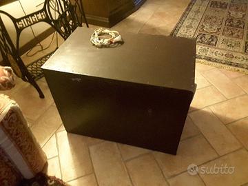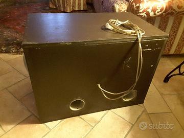 Subwoofer con due woofer Jensen da 25 cm di diametro, in cassa chiusa in modo professionale e calibrata con i giusti litri di aria, con secondo vano per sfogo doppio basso reflex. Suona veramente molto bene. Una via di mezzo tra i secchi bazuca da 25 e il più morbido suono di un sub da 40. Impedenza dei sub di 4 ohm ciascuno. Cassa in materiale mediodensiti da 20mm verniciata chiusa ermeticamente a viti e colla calda, con isolamento interno strati mix colla/sabbia e materiale assorbimento. Misure ingombro L64 h47 p39 (ci sta anche in baule clio o punto 2 serie). Prezzo regalo considerata la qualità dell'articolo. Per eventuale spedizione sentiamoci..