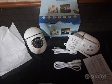 2 Telecamera Interna/Esterna 2-Way Audio Telecamera di Sicurezza Wireless con Orizzontale/Inclinazione/Zoom, Telecamera di Sicurezza per Casa Smart Wi-Fi, Funzione di Tracciamento del Movimento, mai usate!