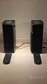 Usate poco, sempre in casa, perfettamente funzionanti. Ideali come casse da scrivania. Suono pulito e coinvolgente.
