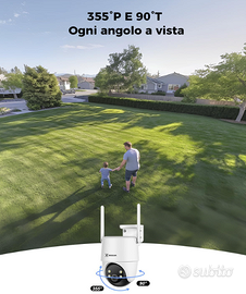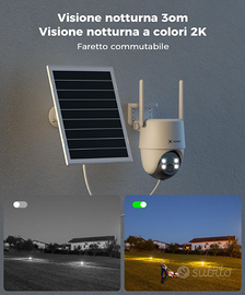COCOCAM 24/7 Registrazione AOV Telecamera Wi-Fi Esterno Solare con Batteria 10000mAh Pannello Solare 8W, 2K PTZ, Rilevamento AI, Tracking AI, Visione Notturna 30 Metri, IP66