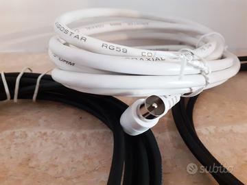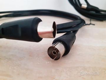 3 cavi antenna in lotto unico: 1 cavo da 3 metri, maschio/femmina 1 cavo da 2,90, maschio/maschio 1 cavo da 1,5 metri, maschio/femmina Perfetti per TV, decoder o qualsiasi dispositivo con ingresso antenna in ottime condizioni