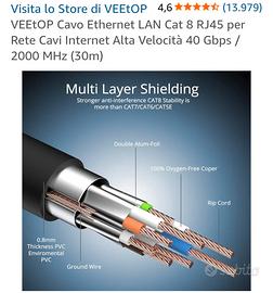 VEEtOP Cavo Ethernet LAN Cat 8 RJ45 per Rete Cavi Internet Alta Velocità 40 Gbps / 2000 MHz (30m)