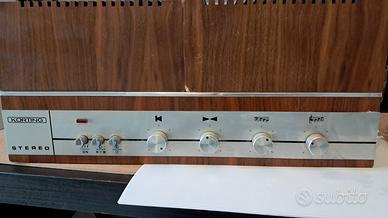 4) Korting fonovaligia. Giradischi BSR funzionante. Si accende ma fa un rumore di fondo se si attaccano le casse. Probabile guasto ai condensatori. Apparecchio sprovvisto degli altoparlanti alle casse.
