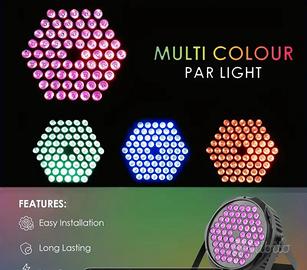 4 Par da palco professionali con 60*3W, controllo del suono, DMX512 e RGBW per creare un'illuminazione atmosferica adatta per matrimoni, festival, Natale e spettacoli teatrali. 30€ 1 Par 60€ 2 Par 80€ 3 Par 110€ 4 Par