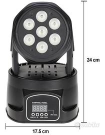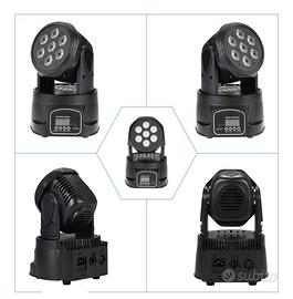 4 teste mobili LED professionali, 70W RGBW 4-in-1, perfette per DJ set, serate, locali, teatri o feste private. Usate pochissimo, tutte perfettamente funzionanti, con staffa di montaggio e display digitale. 📌 Caratteristiche principali: •7 LED RGBW da 10W ciascuno (totale 70W per testa) •Modalità DMX (9 o 14 canali), automatica, audio, master/slave •Movimento PAN 540° / TILT 180° •Display digitale per controllo facile e rapido •Staffa inclusa (montaggio sospeso o a terra) •Alimentazione AC universale 100–240V 💡 Effetto potente, colori brillanti, ottima resa scenica 💶 Prezzo: € 55 cadauna 📲 Contattami per foto dettagliate o video in funzione
