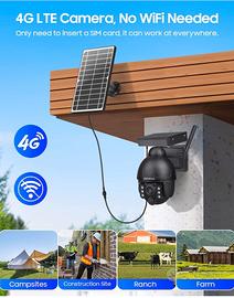 【Batteria Ricaricabile e Pannello Solare】4G-LTE Telecamera per esterni a basso consumo energetico, nessuna connessione di alimentazione richiesta. La telecamera di sicurezza solare installa batterie ricaricabili che garantiscono la potenza eterna della telecamera 4G.