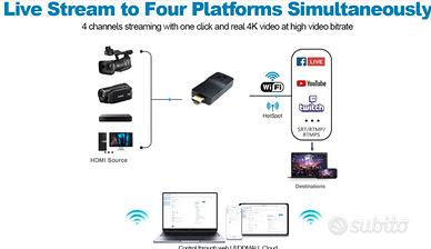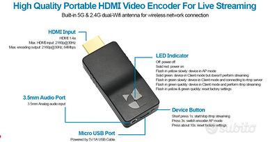 Ingressi HDMI fino a 4K a 30 Hz e uscite streaming fino a 4K a 30 Hz a 64 Mbps.