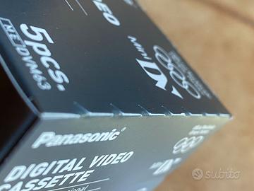 Vendo confezione da 5 cassette miniDV (mini DV) AY-DVM63PQ da 63 minuti nuove mai utilizzate sigillate ancora nella loro pellicola e scatola originale.