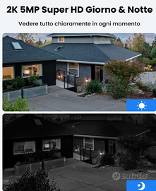 🌟2K+ 5MP FHD & Visione Notturna: Questa telecamera batteria è potenziata a 5 MP per catturare qualsiasi dettaglio anche di notte, offrendo un'esperienza visiva più chiara