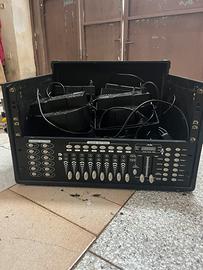 Vendo set completo di illuminazione professionale, i Par Led entrano perfettamente dentro il Flight Case così da essere tutto insieme ed essere trasportato tutto in uno insieme alla centralina, composto da 8 PAR LED DMX RGB, centralina 192 DMX e flight case rigido, usato pochissime volte e in condizioni eccellenti (pari al nuovo).
