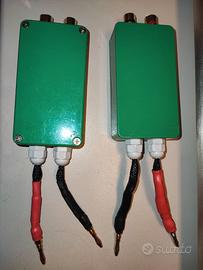 Disponibili una coppia (scatolotto verde) con doppio dispositivo (uno su positivo, uno su negativo) più adatta per le basse frequenze, e una coppia (scatolotto rosso) con singolo dispositivo, più adatta per il medio-alto.