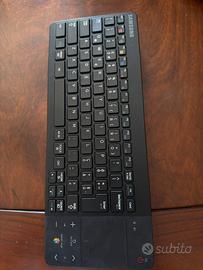 Tastiera wireless con touchpad integrato, ideale per Smart TV. Layout QWERTY, comandi multimediali, colore nero.