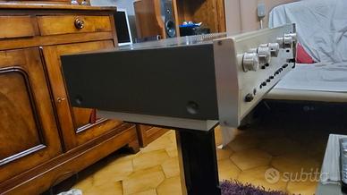 Questo E-203 fa parte della produzione 1981-1983 che rispetto a '79-'80 anche se Accuphase non ha mai ufficializzato una prima e seconda serie il fatto sta nei piccoli ma non poco importanti miglioramenti apportati dal '81 che non ha influenzato timbrica sonora ma sono concentrati sulla robustezza e durabilità dei certi componenti, pregiata realizzazione con mos-fet, 70 watt a 8 ohm, 90 a 4 ohm, servo-control DC, trasformatori C-I shaped core, 2 ingressi phono mm 47000 e 50000, mc 100 di carico, due attenuatori loudness +9 a 50hz +10 e50hz e +6 a 20kHz, controlli tono differenziati 200,500,2000,7000 hz set 50, 100,10000,50000Hz +-10db. filtro subsonico. controllo due coppie diffusori, attenuatore-mute, due tape con monitor, elettronica di pregio, non prevedeva telecomando. peso kg.14,7. Prodotto usato ma in ottime condizioni, ben preservato dal tempo. perfette condizioni soniche. suono magico Accuphase. Preferisco ritiro a mano visto la fragilità de oggetto ma posso anche spedire con imballaggio adeguato.