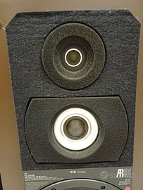 Vendo, a malincuore, dalla mia collezione diffusori Acoustic Research AR 91 in perfetto stato tecnico ed estetico con griglie ed acoustic blanket originali, difficilmente disponibili in queste condizioni. Woofer appena ribordati da tecnico specializzato. Suono eccellente con basso potente e profondo, altissima dinamica, ottima selettività; nessuna attenuazione della gamma alta ed altissima, tipica di esemplari non in perfetto stato tecnico. Controlli su medio e tweeter per un suono su misura. Raccomando di non lesinare sulla qualità dell'amplificatore. Occasione unica per conoscere o ritrovare il vero suono di questo eccellente tre vie.