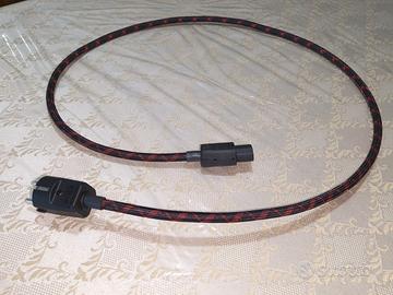 Costituito da 3 conduttori di sezione 2,5mm in puro rame PC Triple-C ( esclusivo brevetto giapponese di Acoustic Revive ) e terminato con spine schuko e iec tedesche di altissima qualità della Kaiser modello Silver Plated customizzate con placcatura in argento da MCRU in UK , rifinito in elegante calza trecciata nera-rossa , lunghezza 1,5 metri .