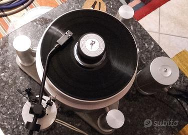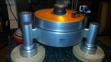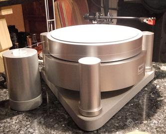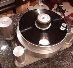 Spettacolare giradischi tedesco a cinghia, il cugino meno appariscente dell'Acustic Solid ma molto meglio sonante e costruito! TT ad alta massa, pesa 40kg, solo il piatto ne pesa più di 12 ed ha un momento d'inerzia incredibile! Può montare 3 bracci e 3 motori, lo vendo con un motore e una base porta braccio (fornisco diverse basette forate SME, Rega, Jelco etc). Alimentazione separata Alpha in classe A. Funzionamento ed estetica top, fornisco anche l'imballo originale e il clamp dedicato!