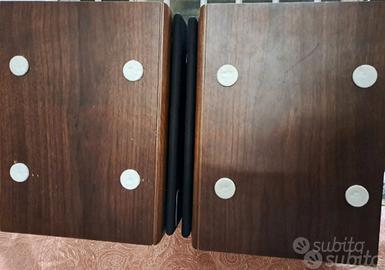 Si tratta di un manufatto di grande qualità sonica e costruttiva realizzato senza compromessi: il mobile pesante é impiallacciato in essenza di vero legno,finitura noce, non in vinile.