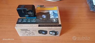 Action cam, con scheda sd e vari componenti per attaccarla a buci, casco, zaino e al petto. Usata una volta a sciare.
