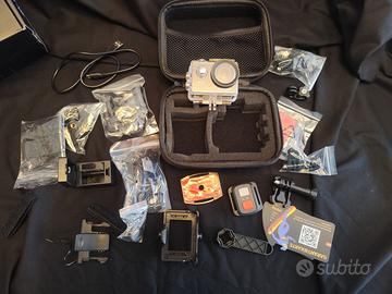 Action camera Apexcam M80 Air video fino a 4k 30 fps, foto 64 MB, impermeabile fino a 40 m, connessione WiFi, due batterie da 1350 mAh con caricabatterie, accessori di vario genere per montaggio su diversi supporti, monitor incluso da 2”