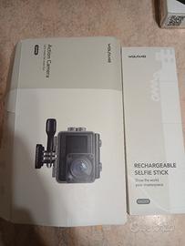 Bellissima action cam Wolfang GA 200 completa di accessori originali microfono esterno, asta telescopica, doppia batteria.