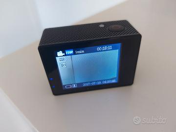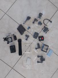 Action camera con risoluzione 4K usata pochissimo. - Custodia impermeabile inclusa. - Accessori di montaggio. - Cinturino da polso.