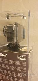 Risoluzione 4K full HD. Grandangolo a 170°, resistente all'acqua fino a 30m con custodia waterproof. Dimensione foto fino a 20MP. Capacitá di memoria fino a 64GB. Seconda batteria inclusa.