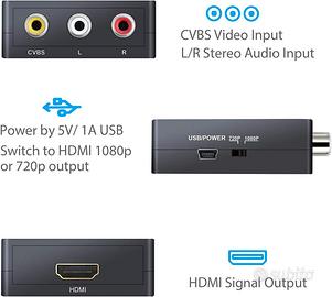 Hai una vecchia console o un videoregistratore che non puoi più collegare alla TV nuova? Con il MINI AV2HDMI convertitore RCA a HDMI riporti in vita tutto il tuo passato digitale in pochi secondi! 👉 Collega i classici cavi RCA (giallo/bianco/rosso) e ottieni subito un’uscita HDMI fino a 1080p: semplice, veloce, senza installazioni. 🚀 Perché comprarlo? 🎮 Gioca alle vecchie console su TV moderne (PS2, Wii, Xbox, GameCube, N64, SNES) 📼 Rivedi videocassette VHS e DVD vintage senza perdere qualità 🕹️ Perfetto per retro gaming e collezionisti 📺 Ideale per TV senza presa SCART o RCA ⚡ Plug & Play: funziona subito, senza driver 🔄 Supporta PAL / NTSC (compatibile con tutto) 🔊 Audio e video sincronizzati in HDMI 💡 Utilizzi pratici (che fanno la differenza) Trasforma la tua TV in una postazione gaming retrò stile anni 90/2000 Recupera vecchi ricordi da videocassette di famiglia 🎥 Perfetto per creare una sala giochi vintage in casa Ideale per negozi, esposizioni o appassionati di tecnologia old-school 🔌 Compatibilità totale Funziona con: PlayStation 1 / 2 (metal gear final fantasy gta gran turismo) Nintendo Wii Xbox classic GameCube, N64, SNES (supermario zelda il re leone mario kart) Videoregistratori VHS Decoder e vecchi lettori DVD 📦 Incluso Convertitore AV2HDMI 💥 Soluzione economica e geniale per non buttare via i tuoi vecchi dispositivi! Con una spesa minima, torni a vivere emozioni che sembravano perse. in vendita su amazon a 10€ vendo a prezzo scontatissimo!