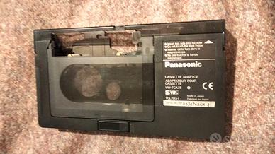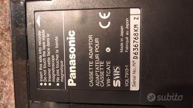 Vendo Panasonic Nuova adattatore per cassette Panasonic VW-TCA7E che permette di riprodurre cassette VHS-C in un comune videoregistratore VHS. Funzione: Convertire il formato VHS-C compatto in formato VHS standard. Compatibilità: Progettato per l'uso con videocamere Panasonic e formati S-VHS/VHS. Utilizzo: Inserire la cassetta più piccola all'interno dell'adattatore prima dell'uso.