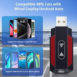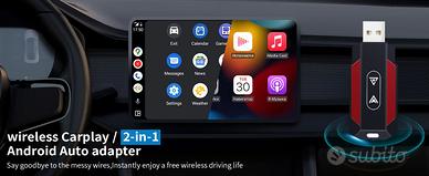 KooDux Adattatore wireless Carplay e Android auto 2 in 1, convertitore Bluetooth Plug&Play, dongle Carplay converte da cavo a wireless, con USB-A/C, adatto per auto con Wired Carplay/Android auto