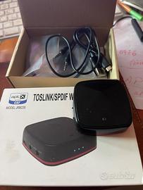 Adattatore wireless ricevitore trasmettitore Bluetooth Toslink / SPDIF Questo ricetrasmettitore audio wireless adotta la tecnologia BT 5.0, consentendo una connessione veloce e una consegna stabile. Ha tre modalità di connessione, AUX, RCA e connessione ottica. Nuovo mai utilizzato