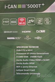 Vendo per scarso utilizzo questo ottimo Decoder Digitale Terrestre della ADB, modello i-CAN 5000 T+ acquistato per vedere i canali del digitale terrestre in occasione dello switch-off cioè della dismissione del vecchio standard DVB-T e passaggio al DVB-T2 con codifica HEVC Main 10.
