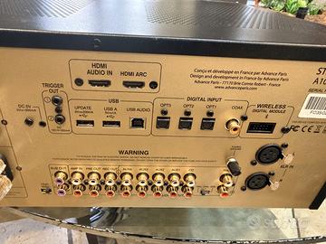 Vendo splendido amplificatore integrato ibrido Advance Paris A10 Classic per passaggio a sistema superiore. L'apparecchio è praticamente nuovo, con solo un mese di vita. Condizioni dell'oggetto: Stato Estetico: Perfetto, indistinguibile dal nuovo. Le pellicole protettive originali sul frontale e sui display sono ancora applicate. • Stato Funzionale: Perfetto, utilizzato pochissimo in ambiente non fumatori. Garanzia: Fornisco regolare prova d'acquisto (fattura/scontrino) di un rivenditore autorizzato per la garanzia residua di 23 mesi. Corredo: Presenti tutti gli imballi originali, telecomando, cavo di alimentazione e manualistica. Caratteristiche principali in breve: Design Ibrido: Pre-amplificazione a valvole per un suono caldo e finale a stato solido da 130W per canale su 8 Ohm per una dinamica incredibile. Primi watt in classe A Connettività Totale: DAC integrato di alta qualità, ingressi XLR, Phono (MM), HDMI ARC, USB-B per PC/Mac e doppia uscita per sub. Estetica Iconica: I leggendari grandi VU-meter blu di Advance Paris che arredano ogni ambiente. SPECIFICHE TECNICHE Performance Audio Potenza: 130W/8Ω – 190W/4Ω per canale in Classe AB Commutatore high bias per funzionamento Classe A primi Watt Stadio preamplificazione valvolare: 2x ECC81/12AT7 Finale di potenza a stato solido Conversione Digitale DAC AKM AK4490 32 bit/768 kHz Supporto DSD fino a 11.2 MHz (DSD256) Supporto PCM fino a 32 bit/384 kHz Ricevitore asincrono XMOS Connettività Digitale 2x HDMI (1x diretto, 1x ARC) 1x USB Type B (DSD256, PCM 32/384) 1x S/PDIF coassiale RCA (24/192) 3x ottici Toslink (24/96) 1x USB Type A per pen drive (FAT32/128GB) Connettività Analogica 1x ingresso bilanciato XLR 5x ingressi RCA sbilanciati 1 ingresso phono MM con regolazione capacità Separazione Pre/Power (Amp In/Pre Out) 2x uscite RCA subwoofer dedicate