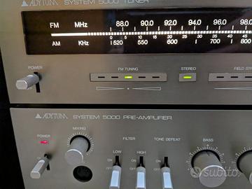Composto da preamplificatore + finale con grandi Vu-meter retroilluminati