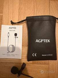 AGPTEK Lavalier Microfono per PC Smartphone con Clip e Un Parabrezza Incluso Adattatore Tipo-c Microfono Esterno Trust Ideale per Youtuber Intervista Conferenza Video Camera Podcast