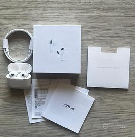 Vendo AirPods 3ª generazione originale Apple in perfette condizioni. Nuovi, ancora sigillati. Inclusi custodia di ricarica originale, cavo di ricarica e scatola originale. Autonomia della batteria ottima.