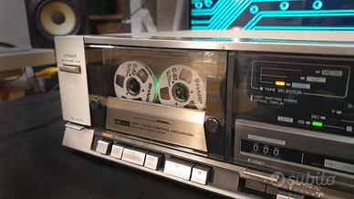 Descrizione: AIWA AD3250, il meccanismo ad orologeria più complesso sul mercato, comandi manuali servo assistiti, controllo BIAS fine +/- 20% per posizione LH, selettore integrato BIAS/EQ LH - CrO2 - Metal. Manopole attenuatori ingresso concentriche L + R, peak meters digitali a LED,Indicatori REC e DOLBY B/C a LED. Contatore analogico a 3 cifre. Uscita cuffie e ingresso MIC phono. Interventi effettuati: - Pulizia interna, esterna - Ripristino funzionalità meccanica MD-3 - Riparazione elettronica - Pulizia trasporto, slitta testine - Ripristino scorrevolezza sportello - Disossidato switch e potenziometri, ripristino scorrevolezza (tutti) - Pulizia ed ingrassaggio contatore - Disossidato e pulito switch trasporto - Pulito ingressi uscite (tutte) - Lubrificazione cuscinetto capstan - Lubrificazione bronzina anteriore motore - Ingrassaggio cuscinetto posteriore capstan - Ingrassaggio/lubrificazione meccanica posteriore - Ingrassaggio/lubrificazione meccanica anteriore - Ingrassaggio hub con grasso alta velocità - Nuova cinghia capstan ad alta uniformità - Nuova cinghia meccanismo - Nuova cinghia contatore - Nuovo idler PB - Pulizia profonda pinch roller + trattamento gomma - Pulizia accurata testine e percorso nastro - Aggiunto luce verde posizionamento nastro - Lucidatura testine R/P - Disossidato PB/REC multiswitch (smontato-rimontato) - Aggiustamento azimuth con nuova sigillatura vite - Regolazione velocità - Calibrazione Playback Level 200nWb/m (ANSI, Dolby) - Calibrazione corrente REC (TDK D, +0dB) - Calibrazione corrente BIAS (TDK D, -20dB) Prossimi interventi suggeriti: Qualche artefatto sul DOLBY C, da investigare se si necessità di tale funzione. Sostituito alcuni cond. degradati (PE / tantalio) ed attuate modifiche meccaniche per corretta funzionalità. Idler nuovo tagliato su misura (esatta). Buonissime condizioni per l'età, coperchio praticamente come nuovo. Cavo di alimentazione integrato.