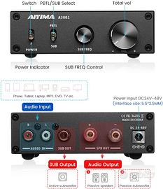 Amplificatore per subwoofer e amplificatore mono full range: con interruttore PBTL/SUB, filtro passa basso integrato per subwoofer con commutazione full range e sub-bass. Passa a PBTL, ed è un amplificatore mono full-range che pilota altoparlanti passivi. Passa a SUB, ed è un amplificatore per subwoofer