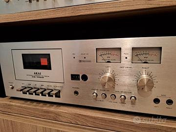 AKAI. Bellissimo registratore CS705D revisionato da poco e perfettamente funzionante. Le lampadine sono nuove. Condizioni estetiche eccellenti, veramente VINTAGE con i comandi rigorosamente meccanici. Molto elegante il cabinet in legno noce, bello e integro. Difficile trovare un registratore di quell’epoca (1976-1979) in queste magnifiche condizioni. Anche amplificatore e sintonizzatore sono in vendita (AM2600 e AT2400).