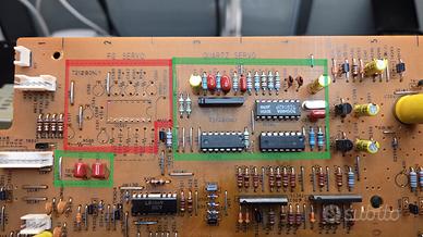Nelle foto allegate è evidenziato in rosso il circuito originale da rimuovere, mentre i riquadri verdi indicano dove andranno installati i nuovi componenti inclusi nel kit.