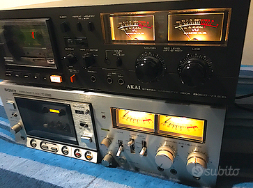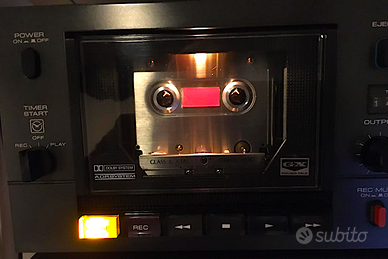 Magnifico registratore a cassette AKAI GXC715 anno 1979 in splendide condizioni (9 / 10), nella rara versione in livrea nera, il deck era uno dei modelli costosi, alti di gamma alta di casa Akai, la parte meccanica è già stata ricondizionata, cinghie idler, lubrificazione etc etc. La tastiera ovviamente è già stata revisionata (operazione indispensabile su questa serie di registratori, in quanto come ben sanno gli appassionati con gli anni la gomma conduttiva dietro ai tasti si deteriora, problema risolto elegantemente utilizzando dei microswitch, la risposta dei tasti ora è precisissima e molto reattiva) la componentistica elettronica è originale al 100%. Macchina dotata di bellissimi vu meter ad ago analogici, il gxc 715d è costruito come un carro armato, solido e pesante, tutto metallo e alluminio, la meccanica a due motori è robustissima, azionata da potenti solenoidi, le celebri testine gx montate sul gxc- 715d e sugli altri modelli alti di gamma della serie gx e gxc sono praticamente eterne, l'azimuth (allineamento delle testina) è perfetto, teste pulite e smagnetizzate, suono di alta qualità, apparecchio adatto a collezionisti veramente esigenti. Preferibile ovviamente la prova e il ritiro di persona per verificarne lo stato e il funzionamento. La spedizione è comunque possibile. Contattare tramite messaggio che una soluzione si trova. Garantisco e richiedo massima serietà, astenersi perditempo per cortesia.
