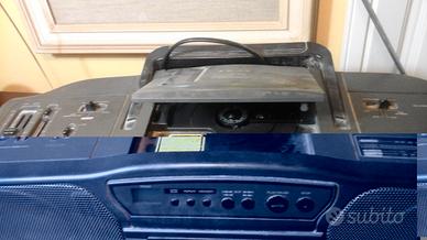 Unico apparecchio, legge cassette, CD. Radio con antenna. Portatile, vintage.