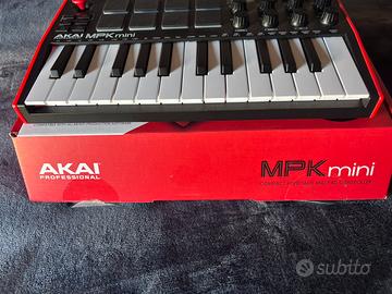Akai Professional MPK Mini MK3 - Tastiera MIDI Controller USB a 25 Tasti con 8 Drum Pad Retroilluminati, 8 Manopole, Software e Native Instruments Sound Package (NKS Integration) acquistato gennaio 2026 utilizzato max 2 volte vendo per scarso utilizzo in perfetto stato come nuovo ha anche cavo adattabile iPhone ultima generazione Ipad e tutti i dispositivi con USB- tipo C